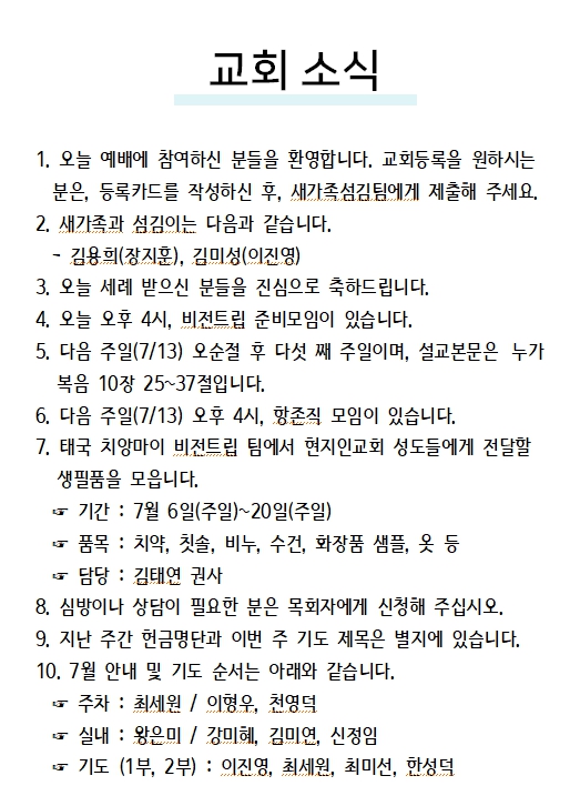 2025년 07월 06일 교회소식