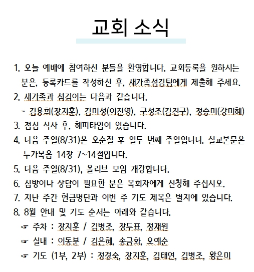 2024년 08월 31일 교회소식