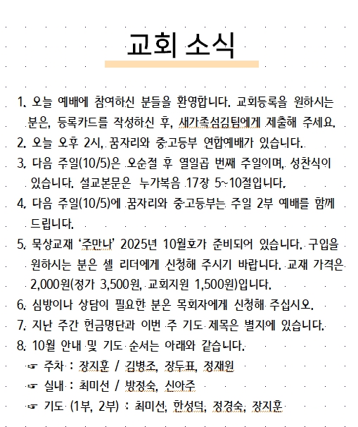 2025년 9월 28일 교회소식