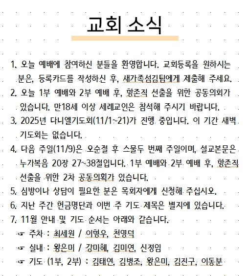 2025년 11월 09일 교회소식