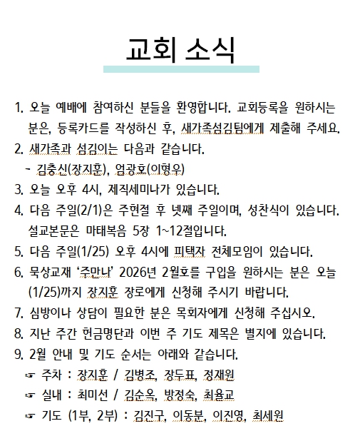 2026년 1월 25일 교회소식