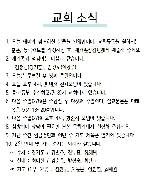 2026년 2월 1일 교회소식