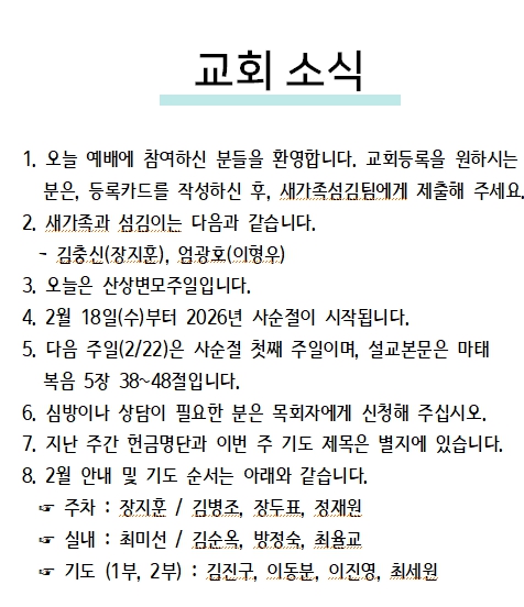 2026년 2월 15일 교회소식