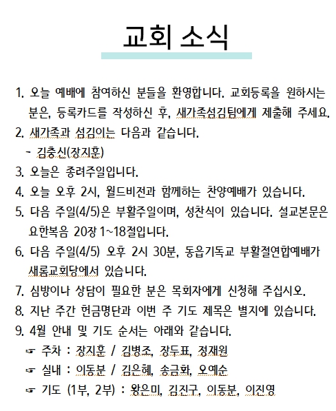 2026년 04월 05일 교회소식