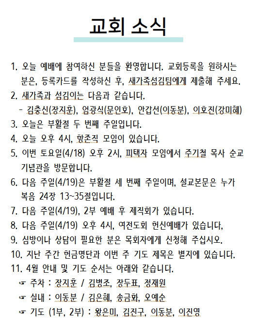 2026년 04월 12일 교회소식