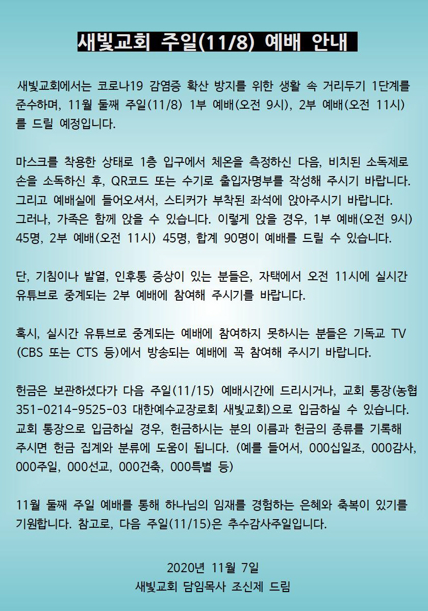 | 다음글 : 2020년 11월 15일 주일예배 안내 | |