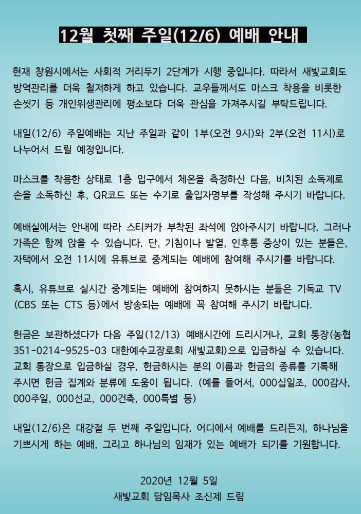 | 다음글 : 2020년 12월 13일 주일예배 안내 | |
