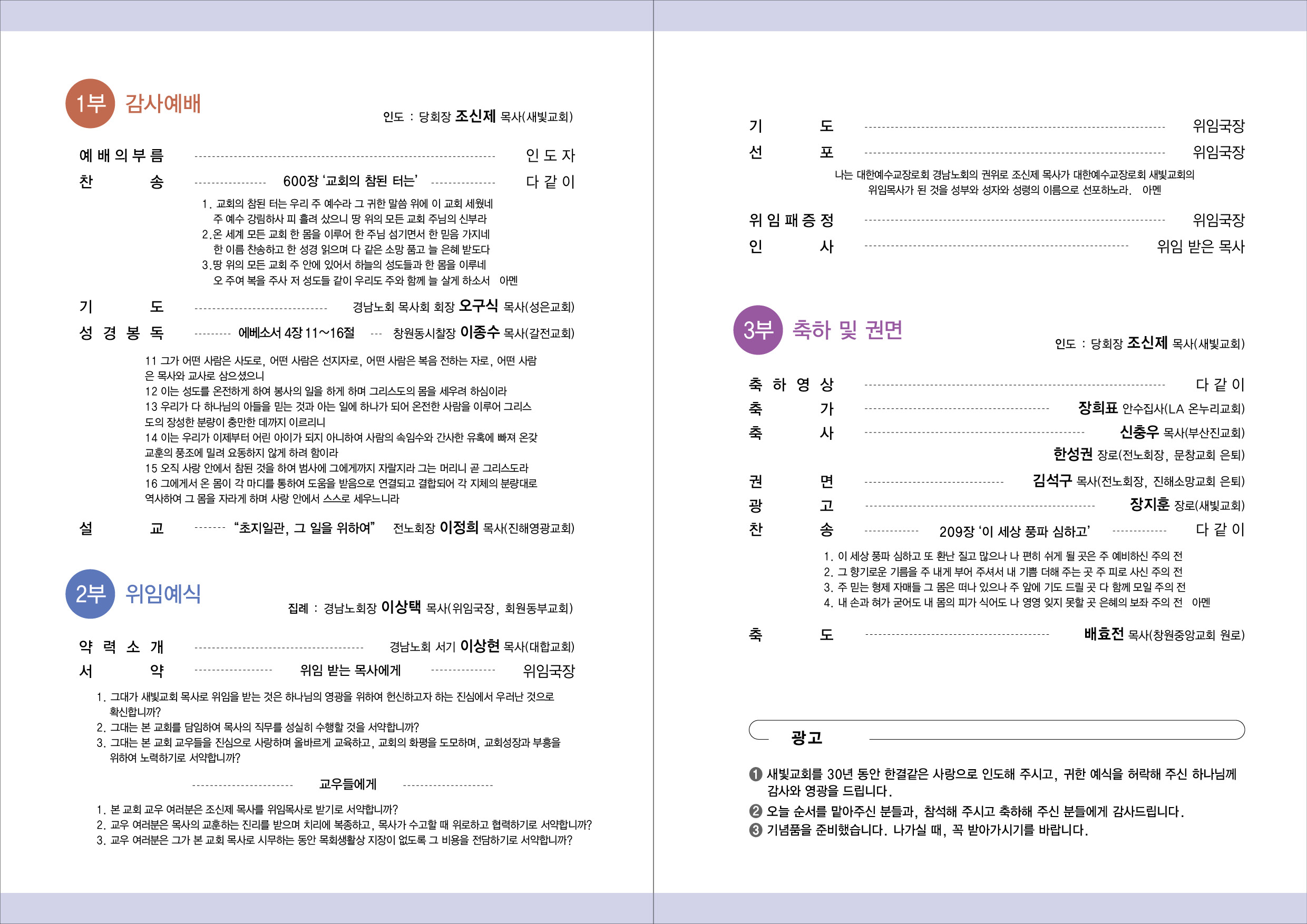 교회설립 30주년 감사 및 조신제 목사 위임 예식 안내